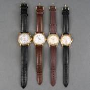 Vier herenpolshorloges, alle automaat, waaronder: Jules Delas, goudkleurig metalen kast, aan zwart lederen band, Ø 3,5 cm