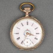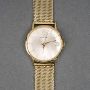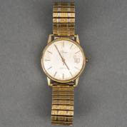 14kt gouden horloge aan vergulde rekbare band, brutogewicht 56,7 gram, Ø 3,25 cm
