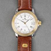 Herenpolshorloge Maurice Lacroix, Quartz, LC1057, dag- en datumaanduiding, aan bruine lederen bandje, inclusief originele doos en papieren, 2005, 22,5 x Ø 4 cm