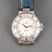Stalen herenpolshorloge Baume & Mercier, automaat, model Formule S, aan blauw lederen band met clipsluiting, Ø 3,75 cm