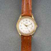 Herenpolshorloge Jean Marcel, automaat, met goud- en zilverkleurig stalen kast, aan bruin lederen band, Ø 3,5 cm