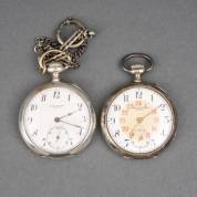 Twee herenzakhorloges in zilveren kasten, diverse gehaltes, brutogewicht 160 gram, Ø 4,75 cm