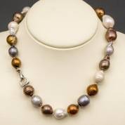 Collier van bruine, grijze en witte gecultiveerde zoetwaterbarokparels, 46 cm