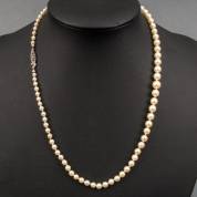 Aflopend geknoopt collier van gecultiveerde parels, aan 2e gehalte zilveren slot, 46 cm
