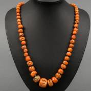 En chûte geknoopt bloedkoralen kralencollier aan ovaal 14kt gouden bolslot, brutogewicht 86 gram, 60 cm