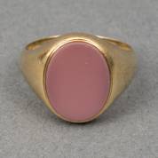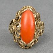 14kt gouden ring met ovaal cabochongeslepen bloedkoraal, mt. 17,25, brutogewicht 4,2 gram