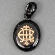 Ovale rouwhanger van git met haarwerkje en BWGG applique, brutogewicht 15,7 gram, 6,5 x 3,5 cm