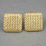 Paar vierkante 18kt gouden manchetknopen met decor van vlechtwerk, gewicht 14,4 gram, 1,75 x 1,75 cm