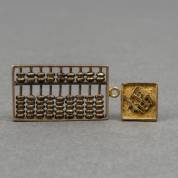 14kt gouden hanger in de vorm van een telraam, daarbij: een enkele 14kt gouden steker met Chinees teken, bruto gewicht 5,0 gram, 1,5 x 2,5 cm