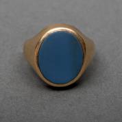 14kt gouden herenring met ovale blauwe lagensteen, zonder gravering, mt. 20,75, brutogewicht 9,1 gram