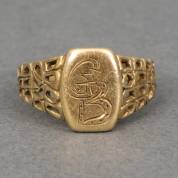 14kt gouden monogramring met gestileerde open scheen, gemonogrammeerd: 'G.B.', mt. 18,75, gewicht 5,2 gram