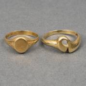14kt gouden zegelpinkringetje, mt. 16, daarbij: 14kt gouden fantasiering, mt. 16,5, gewicht 4,1 gram