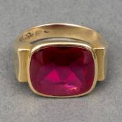 14kt gouden herenring met synthetische robijn, meester: Eduard Goudsmit N.V., Rotterdam, mt. 18,75, brutogewicht 9,0 gram