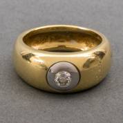 18kt gouden Bombayring, Pommelato, met in witgoud een briljantgeslepen diamant, circa 0.25ct, mt. 18,5, brutogewicht 13,1 gram