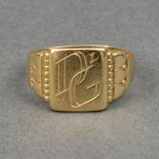 14kt gouden monogramring met initialen D v.d. G, mt. 20,75, gewicht 3,7 gram
