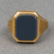 14kt gouden herenzegelring met donkere octagonaal geslepen lagensteen, mt. 17,25, brutogewicht 3,7 gram