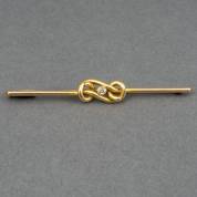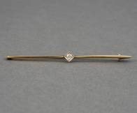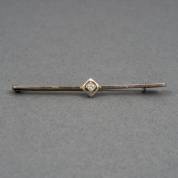 14kt gouden staafbroche, bezet met briljantgeslepen diamant, brutogewicht 1,4 gram, in cassette, ,75 x 5 cm