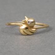 14kt gouden ring met een vogeltje, waarvan het oogje wordt gevormd door een klein diamantje, mt. 19, brutogewicht 0,9 gram