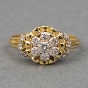 18kt gouden rozetring, bezet met dertien briljantgeslepen diamanten, totaal circa 0.58ct, circa 1970, mt. 19,25, brutogewicht 4,9 gram