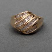 14kt gouden ring, bezet met baguettegeslepen diamant, totaal circa 0.80ct, mt. 17, brutogewicht 6,5 gram