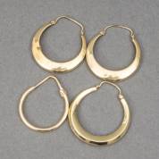 Paar 14kt gouden oorringen, en twee enkele 14kt gouden oorringen, gewicht 2,6 gram, 2,75 x 2,5 cm