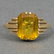 14kt gouden ring bezet met tafelgeslepen citrien, mt. 16,5, brutogewicht 2,0 gram