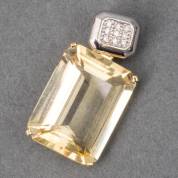 18kt wit- en geelgouden hanger met rechthoekige tafelgeslepen citrien, waarboven negen diamantjes, pavé gezet in witgoud, brutogewicht 7,4 gram, L 42 cm