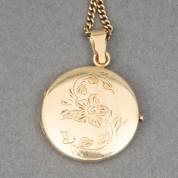 Rond 14kt gouden medaillon, aan 14kt gouden gourmetschakelcollier, brutogewicht 14,0 gram, Ø 2,5 , 46 cm