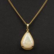 14kt gouden hanger met druppelvormige opaal, aan 14kt gouden collier, brutogewicht 5,7 gram, 2,5 x 1,25 , 44 cm