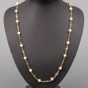 18kt gouden collier met opengewerkte schakel met ster, afgewisseld met gecultiveerde parel, brutogewicht 19,8 gram, 64 cm