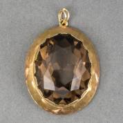 Ovale 14kt gouden hanger met gefacetteerde rookkwarts, brutogewicht 14,8 gram, 3,75 x 3 cm