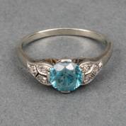 14kt witgouden ring met topaas en briljantjes -topaas sleets-, mt. 18,25, brutogewicht 3,1 gram