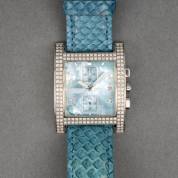 Damespolshorloge Altanus, chronograaf, met quartzuurwerk, stalen kast met 264 briljantgeslepen diamantjes, totaal 4.19ct, turquoise parelmoer wijzerplaat met datum, aan turquoise slangenlederen band, 4,5 x 3,75 cm