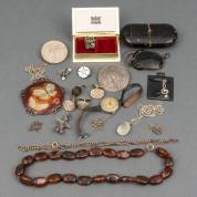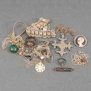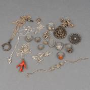 Diverse zilveren bijouterieën, diverse gehaltes, waaronder een hanger met bloedkoraal, brutogewicht 108 gram