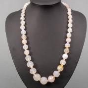 Gefacetteerde Kornalijnen kralencollier, en chûte geregen met rozenkwarts tussenkralen, aan BWGG stervormig slot bezet met entourage van pareltje en granaatjes, brutogewicht 95,4 gram, 57 cm