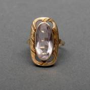 14kt gouden ring, bezet met gefacetteerde kristal, mt. 16,25, brutogewicht 4,6 gram