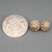 2e gehalte zilveren dubbele Zeeuwse knoop broche, en grote ronde zilveren broche met 'Concordia Res Parvae Crescunt '-eendracht maakt macht- , gewicht 8,0 gram, Ø 6 cm
