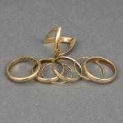 Zeven 14kt gouden ringen, diverse maten en modellen, 13,9 gram