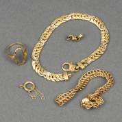 Divers sloopgoud, waaronder: dubbelgourmetschakelarmband zonder slot, en versleten armband, gewicht 19,6 gram