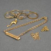 Diverse gouden sieraden, diverse gehaltes, waaronder: 14kt gouden hanger in de vorm van een dolfijn, brutogewicht 10,2 gram