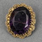 14kt gouden broche, bezet met ovale gefacetteerde amethist, in gegranuleerde bloemzetting, brutogewicht 4,8 gram, 2,5 x 2,25 cm