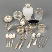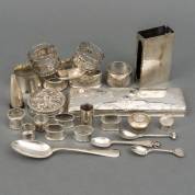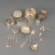 Divers klein zilver, diverse gehaltes, waaronder: paar filigrain servetbanden, circa 1820, peperstrooier en diverse servetbanden, brutogewicht 709 gram