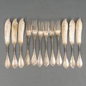 Zes 2e gehalte zilveren viscouverts met getorste heften, meester: J. Boon, Schoonhoven, 1905, gewicht 480 gram, 20 cm