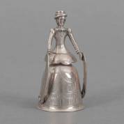 2e gehalte zilveren miniatuur: figuur op hondenkar, daarbij: 2e gehalte zilveren postzegeldoosje met aan de ene zijde een reliëfdecor van een zeilboot, aan de andere zijde van een windmolen, totaalgewicht 37 gram, 3 x 5 x 3 cm
