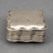 2e gehalte zilveren lodereindoosje, met gegraveerd bladdecor, meester: A. Nobel, Schoonhoven 1852-1864, gewicht 19 gram, 4 x 3 x 2 cm