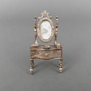 2e gehalte zilveren miniatuur: kaptafel met lade en spiegel, circa 1900, brutogewicht 52 gram, 9 x 5 x 2 cm