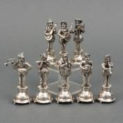 Zeven 2e gehalte zilveren miniaturen: straatmuzikanten, meester: C.A. Stout, Rotterdam, 1978, gewicht 106 gram, 3,5 cm