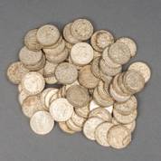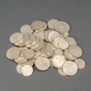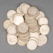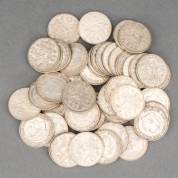 49 zilveren rijksdaalders en zeven zilveren guldens, Juliana, jaartallen circa 1960, gewicht 781 gram