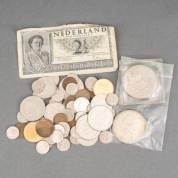 Divers Nederlands muntgeld, waaronder: zilveren Nederlandse rijksdaalder, Wilhelmina, 1939, een biljet van 2,5 gulden, daarbij: zilveren Engelse munt 1977
