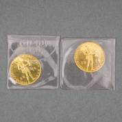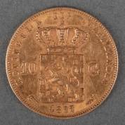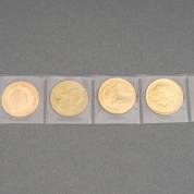 Vier naslag gouden tientjes, gewicht variërend van 5 tot 6 gram per munt